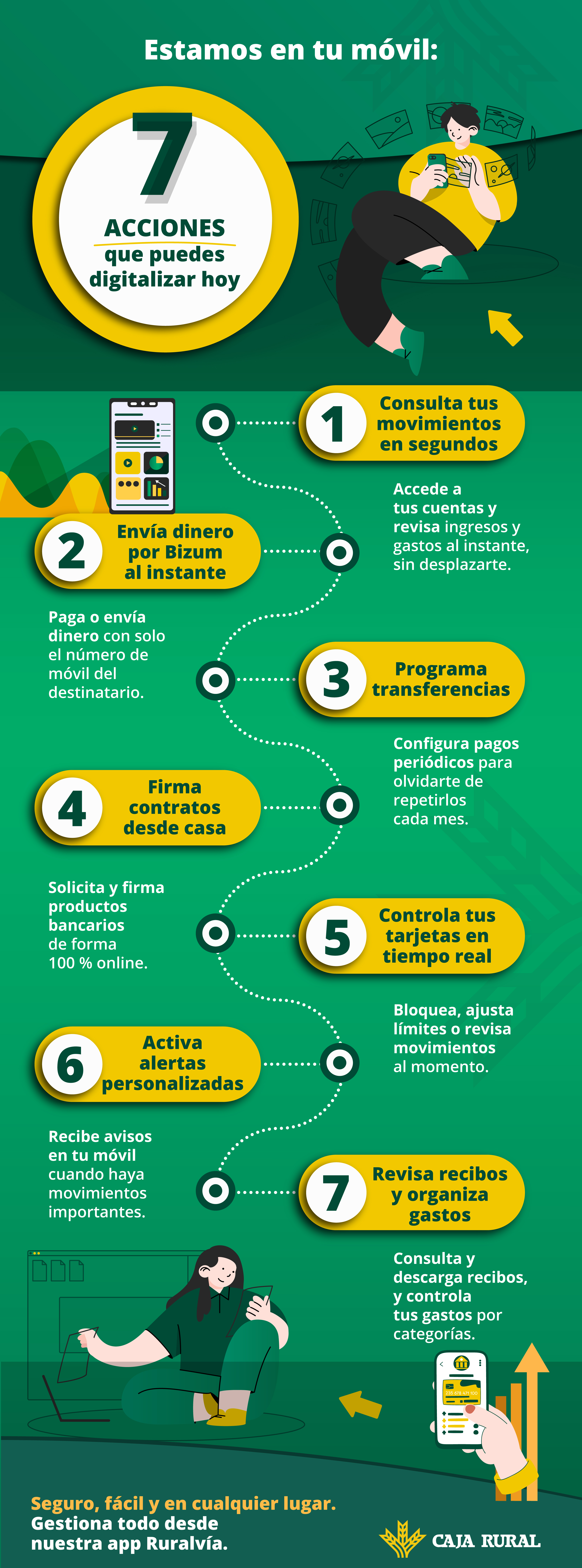 Si aún no usas la app de tu banco, estás perdiendo tiempo. Tiempo que podrías dedicar a lo que realmente importa. Porque con Ruralvía no solo accedes a tus productos: los gestionas, los adaptas y los controlas desde el móvil, sin esperas.